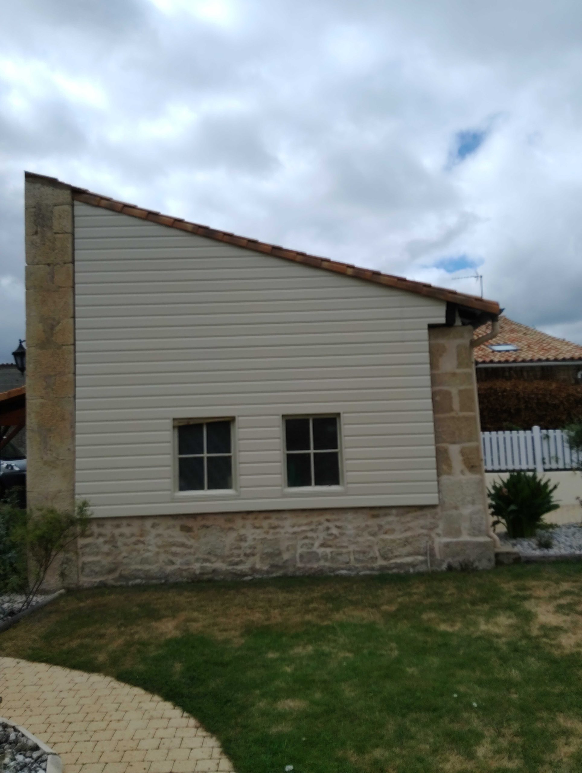Pour la partie protection du froid et du chaud dans la maison, nous pratiquons l’ITE (isolation thermique par l’extérieur) avec une finition en extérieur de bardage bois, fibrociment ou PVC.
