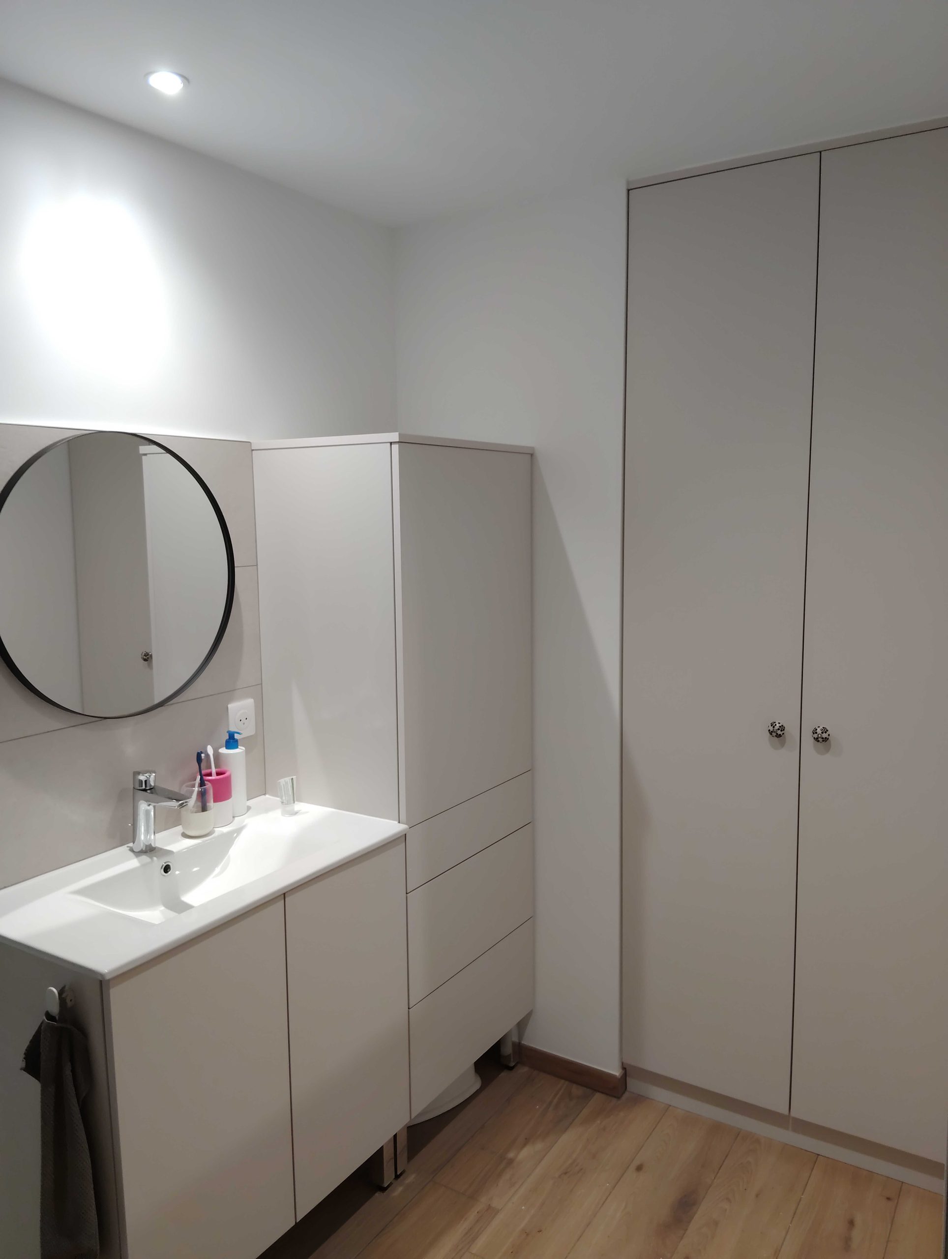 Une salle de bains rénovée, plus moderne que jamais en habillant les murs de panneaux compacts hydrofuges, avec un large choix de décor ainsi que du mobilier sur mesure.